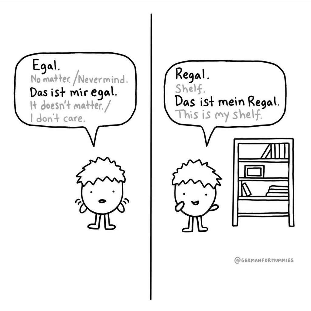 Here is one example of how limited language skills can create funny situations: I sometimes accidentally said “Regal” to people which means “Shelf”, when I meant to say “It doesn’t matter” which is “Egal” in German. With my local neighbour we were laughing that maybe people think I’m in the furniture business now, always excitedly talking about shelves!