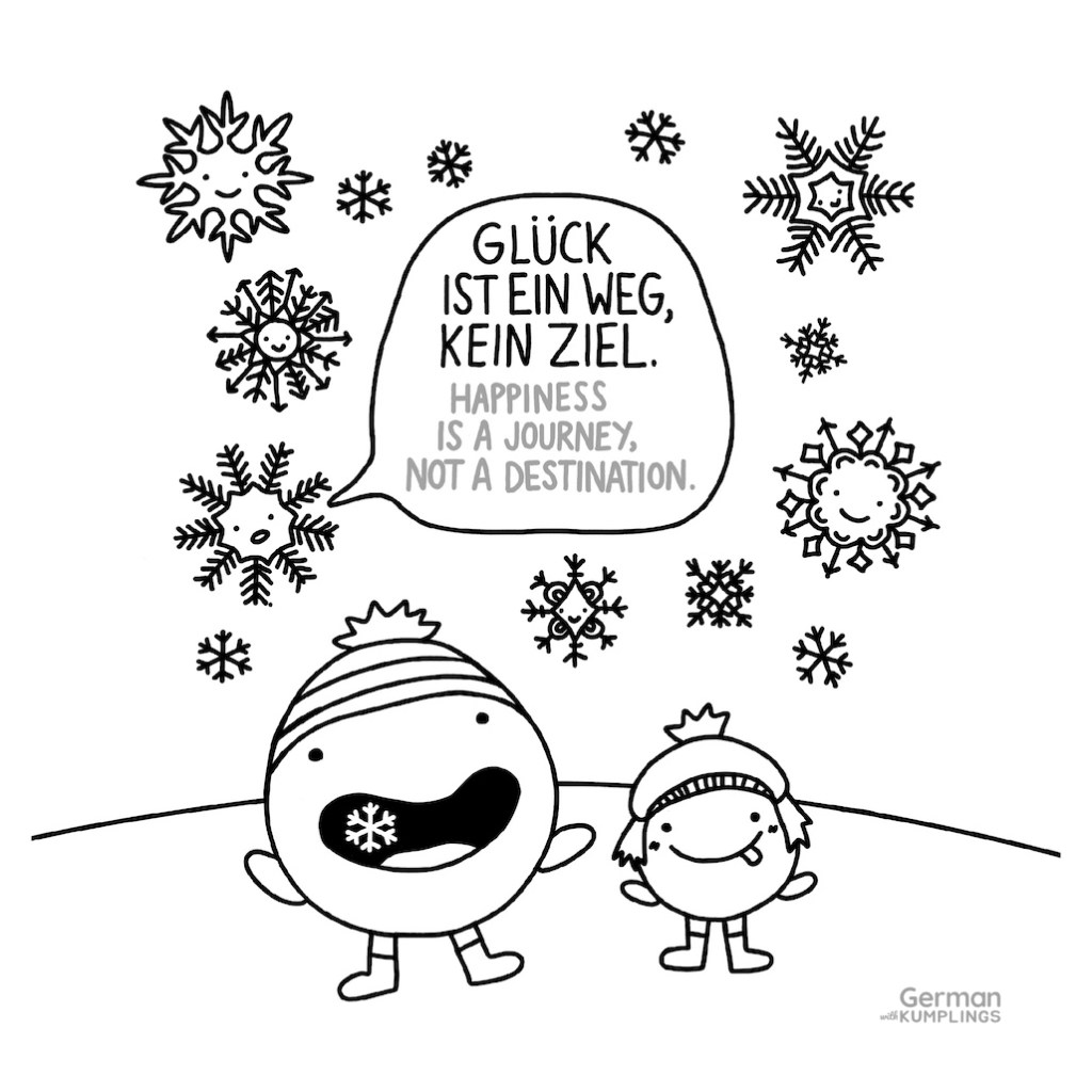 Join Kumplings as they navigate various situations —from ordering coffee to meeting the neighbours— all while learning some German. A warm welcome — Herzlich willkommen!