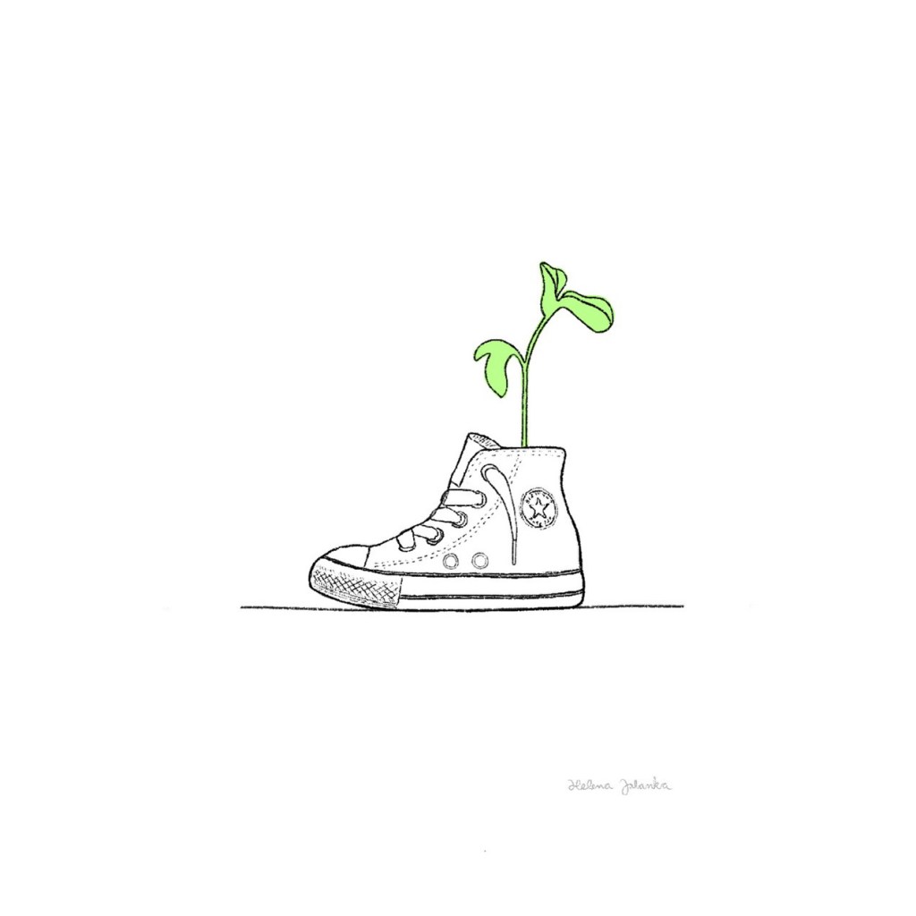This shoe image was inspired by the photo I saw online in which a plant was growing from a boot and also by the light feeling in the spring, when you’re wearing sneakers after the winter.