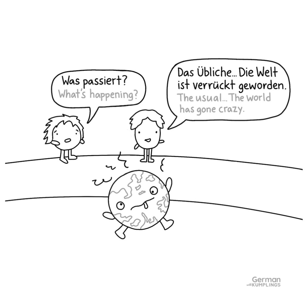 German with Kumplings is lovingly crafted by Helena, an artist/designer and mom who moved with her family to a German-speaking place without knowing the language or anyone there โ and the whimsical cartoon characters came to the rescue!